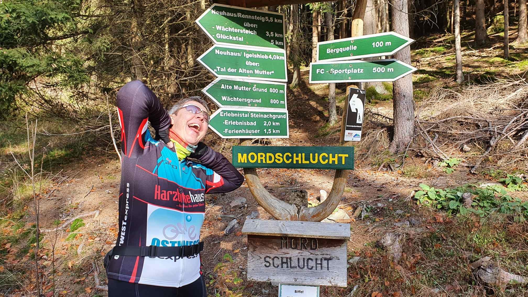Bei Lauscha in Thüringen unweit des Rennsteiges entdeckten wir die Mordschlucht. Wir durchradelten sie unbelästigt.