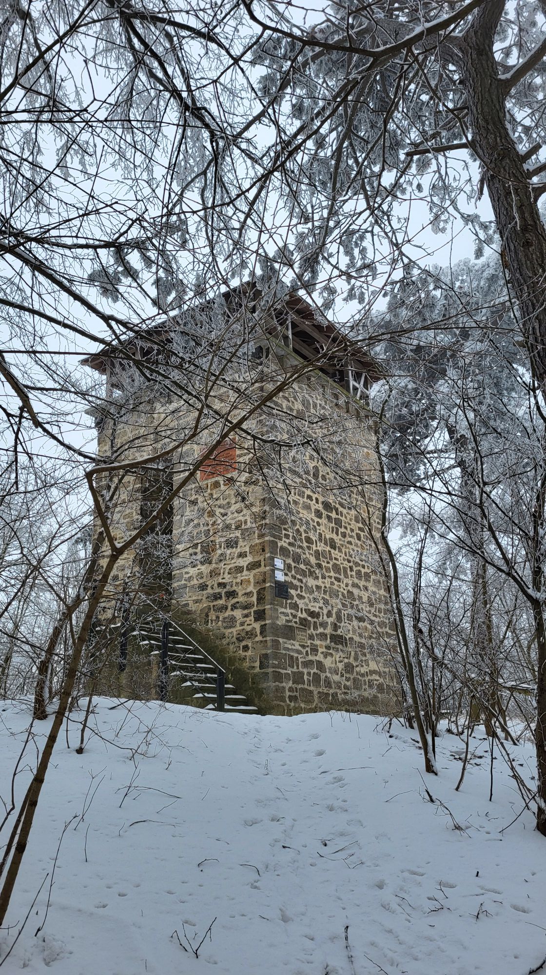 Die mystische Stimmung des Huy mit alten Klostermauern, Wäldern und Ausblicken passt perfekt zum Thema. Nicht weit von der Huysburg finden wir mitten im Wald die Sargstedter Warte.