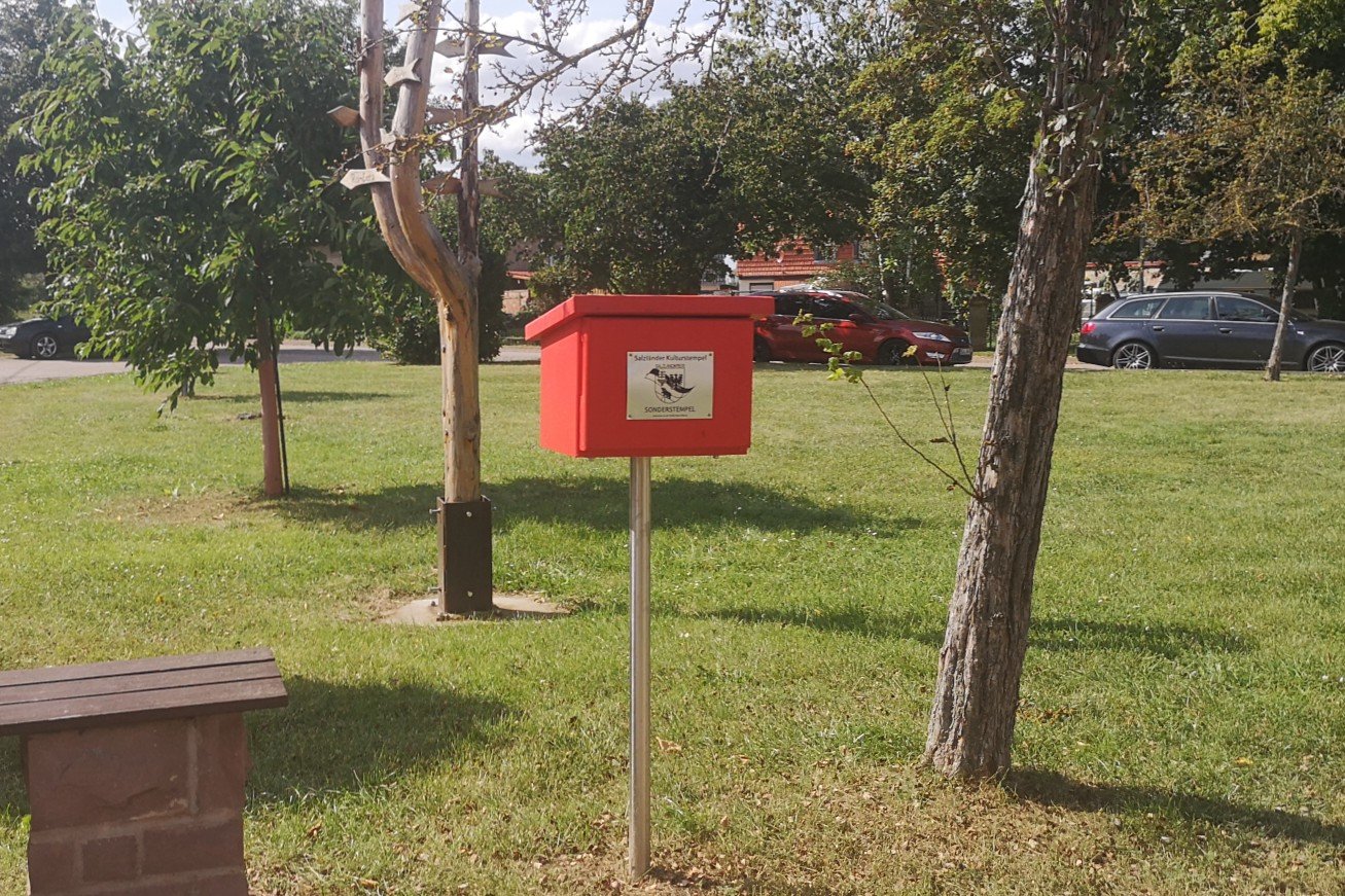 Wir radeln weiter nach Staßfurt und besuchen das Strandsolbad. Dort gibt es auch die Stempelstelle #35 des Salzländer Kulturstempels.