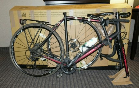 Eigentlich hätten wir die Räder gleich zusammen gebaut, doch es regnete heftig und 10 kanadische Dollar für den Bustransfer zum Hotel waren auch ok. Im Hotel konnte ich dann die Räder für unsere Kanada-Traumradeltour ganz entspannt zusammen bauen.