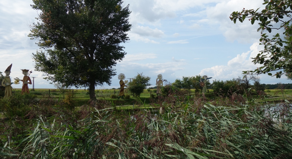 Am Dorfteich stehen riesige kunstvolle Skulpturen.