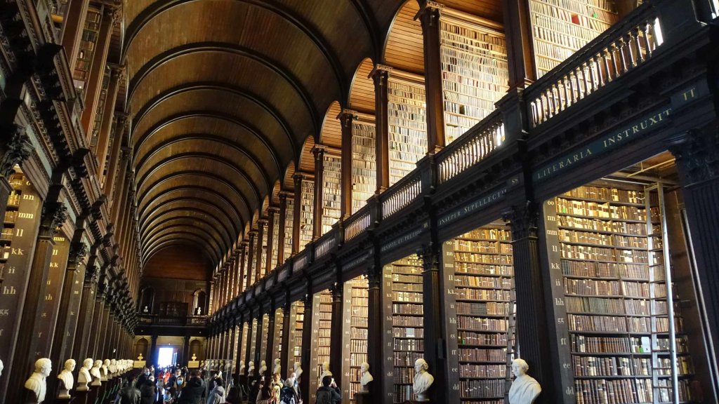 Wir besuchen Bibliotheken und das ist klasse. Wir sind in Dublin und betreten das Trinity College. Dieses College wurde 1592 nach dem Vorbild von Oxford und Cambridge gegründet und ist eines der weltweit renommiertesten Colleges.