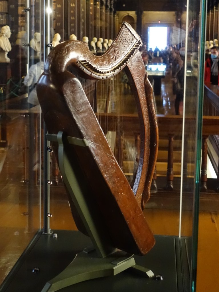 Die Iren haben es mit Harfen. Im Staatswappen, auf Euromünzen und auch am Guinnessbier finden wir Harfen. Voilà, hier ist die älteste, irische „Urharfe“.