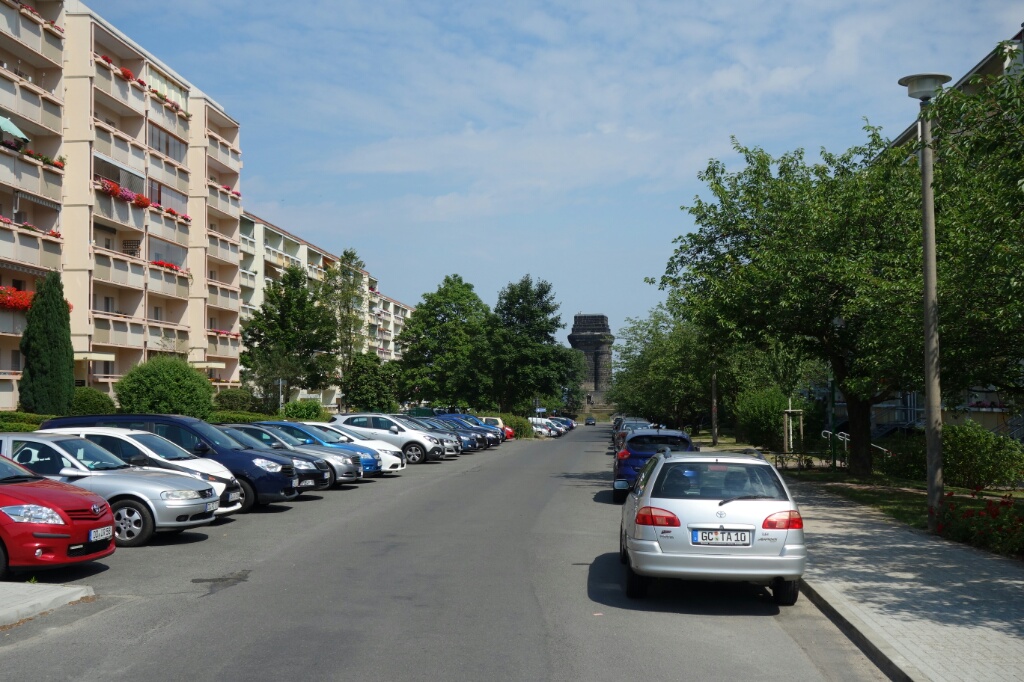 Seht ihr, da hinten, am Rand der Neubaublocks, befindet sich unser erster Turm.